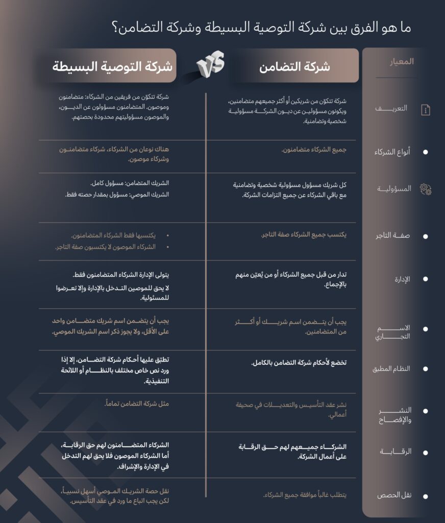 ما هو الفرق بين شركة التوصية البسيطة وشركة التضامن؟ (جدول مقارنة شامل بينهما):